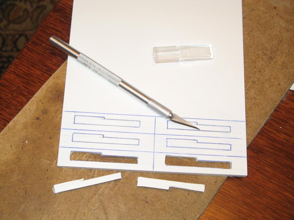 ПВХ достаточно хорошо режется ножом - хотя тут многое зависит от плотности. На рисунке - самый плотный, однако и с ним макетный нож справляется успешно: