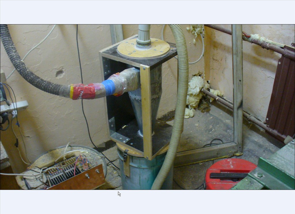 Пробовали-ни фига не получилось... На данный момент проблему решили так: нашли в интернете сайт ЧПУшников, там кто то выложил эскиз самопального циклона на базе пылесоса. Приятель из металла 0,5 спаял корпус, в качестве резервуара ведро. Главное что бы всё было герметично! При обработке бальзы и абаши пыль удаляется на 90%, с липой немного похуже. Я очень доволен. Дай бог здоровья моему приятелю Олегу, который всё это изготовил!!!Евген ты сделай короб чтоб по длине входил под заготовку