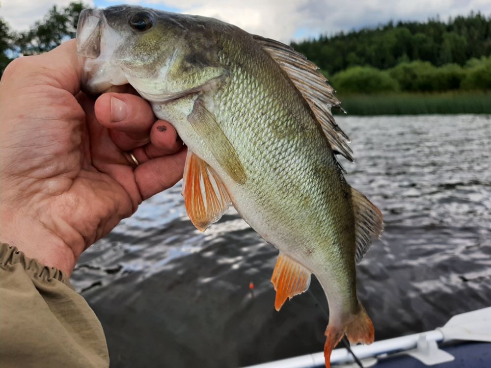 Чуть сместившись, метров на 50, нащупываю стайку окушка, полавливаю, но почти всех за борт, взял 3 шт. сьедобных, грамм по 200-250.