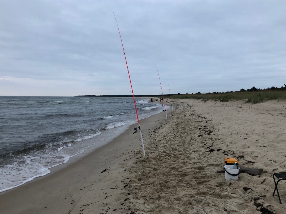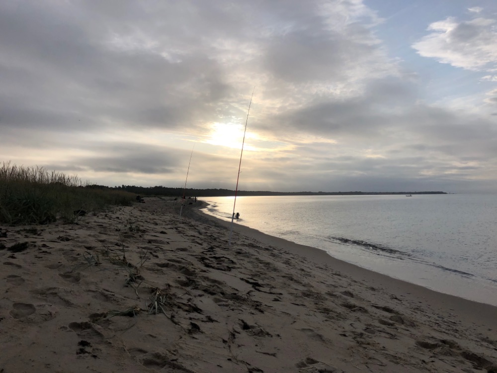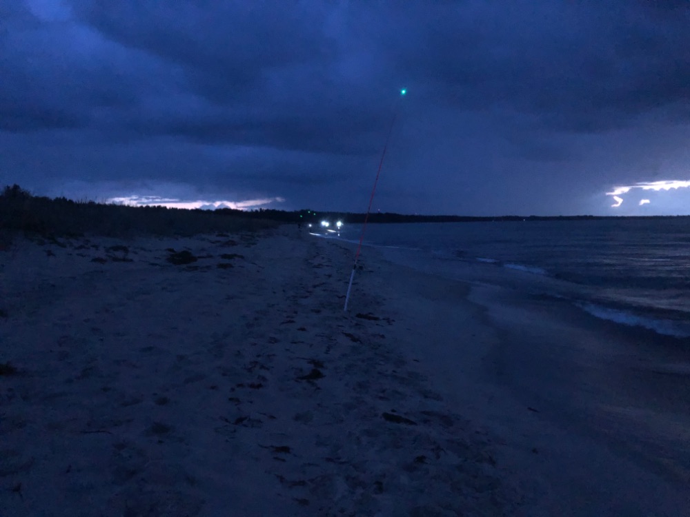 Клёва не было на всей протяжённости береговой линии, народ активно перезабрасывался, но снасти приходили пустые. В ночном свете фонарей это было отчётливо видно, как минимум на 3 компании в обе стороны от нас. Было удивительно наблюдать как под завязку забитый пляж стал пустеть - уже начиная с 22 народ потянулся в сторону парковки....