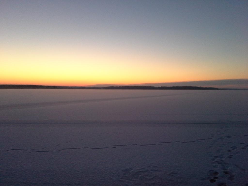 Долговато пришлось в этом сезоне ждать сего события. Как и планировали,в 7,30 подхватываю напарника и берем курс на озеро. За бортом как и обещали метеорологи почти - 17. Нормально вроде. На берегу озера уже -20,да еще с ветерком.Не возвращаться же на самом деле,как никак первый выезд. Приехали с рассветом,значит днем будет теплее.