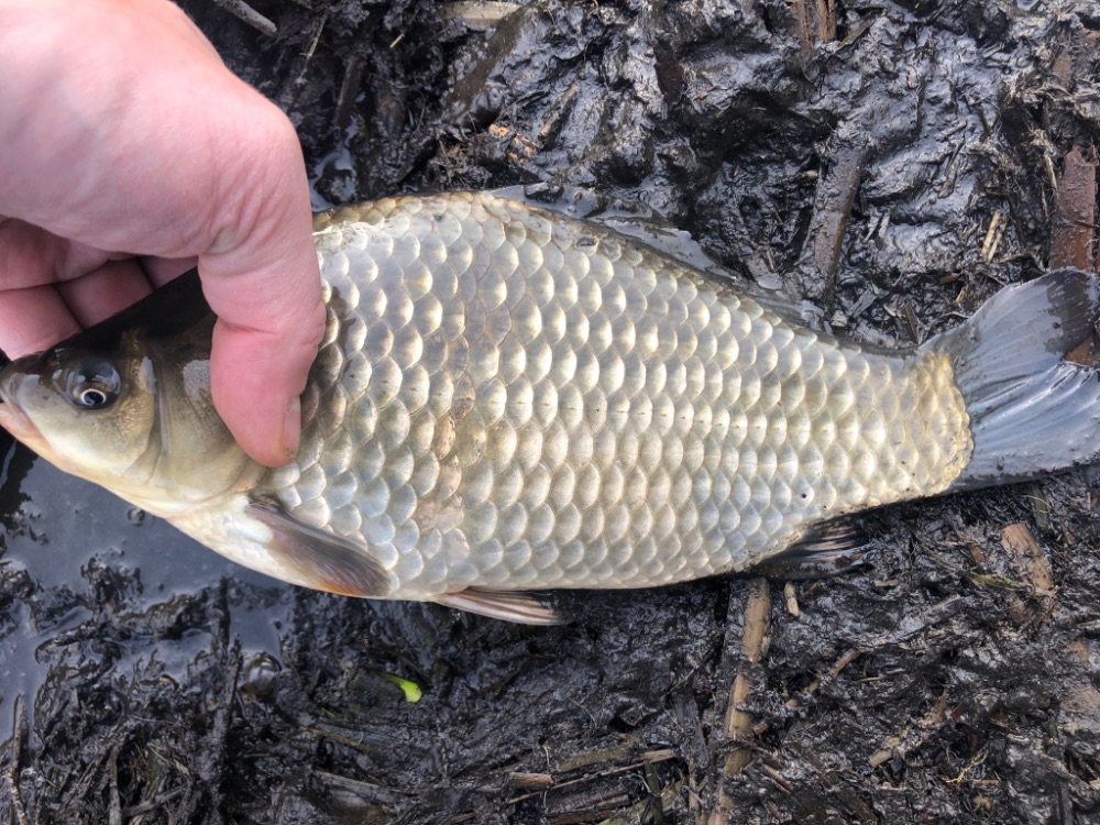 Карась до кило. Рыба была не нужна. Садок развязал.
