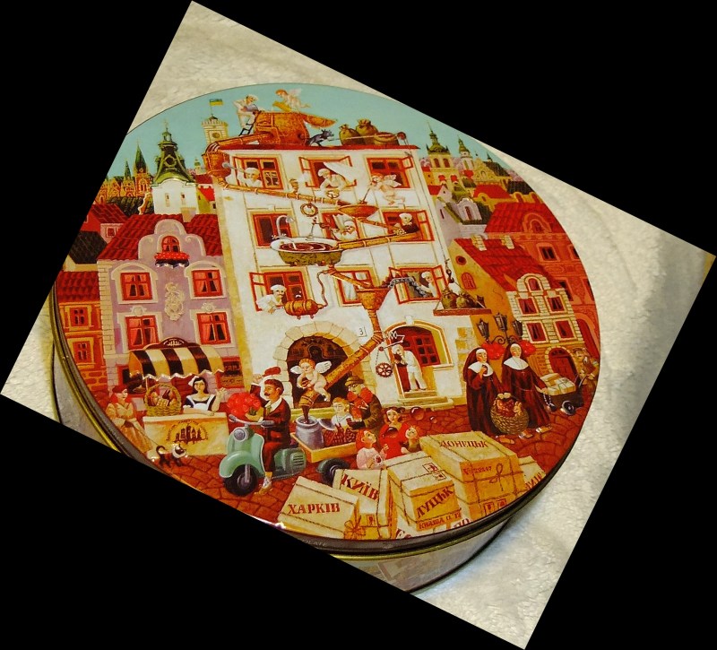 Подарили давеча клиенты проездом с Украины коробку Львовского шоколаду. Коробка жестяная, круглая - типа датских печенюшек - в хозяйстве полезная.
