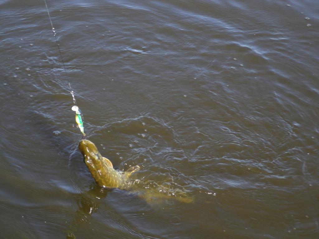 На второй день было получше. Стали попадаться "съедобные", но и мелочи достаточно. Около десятка отпустили подрастать. Клевало на всё. Но вода очень мутная и по этому рыба брала когда блесной по носу ей проведёшь. Три штучки уехали домой