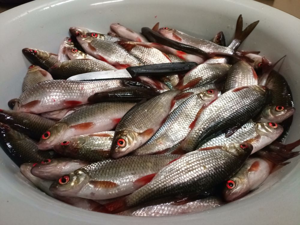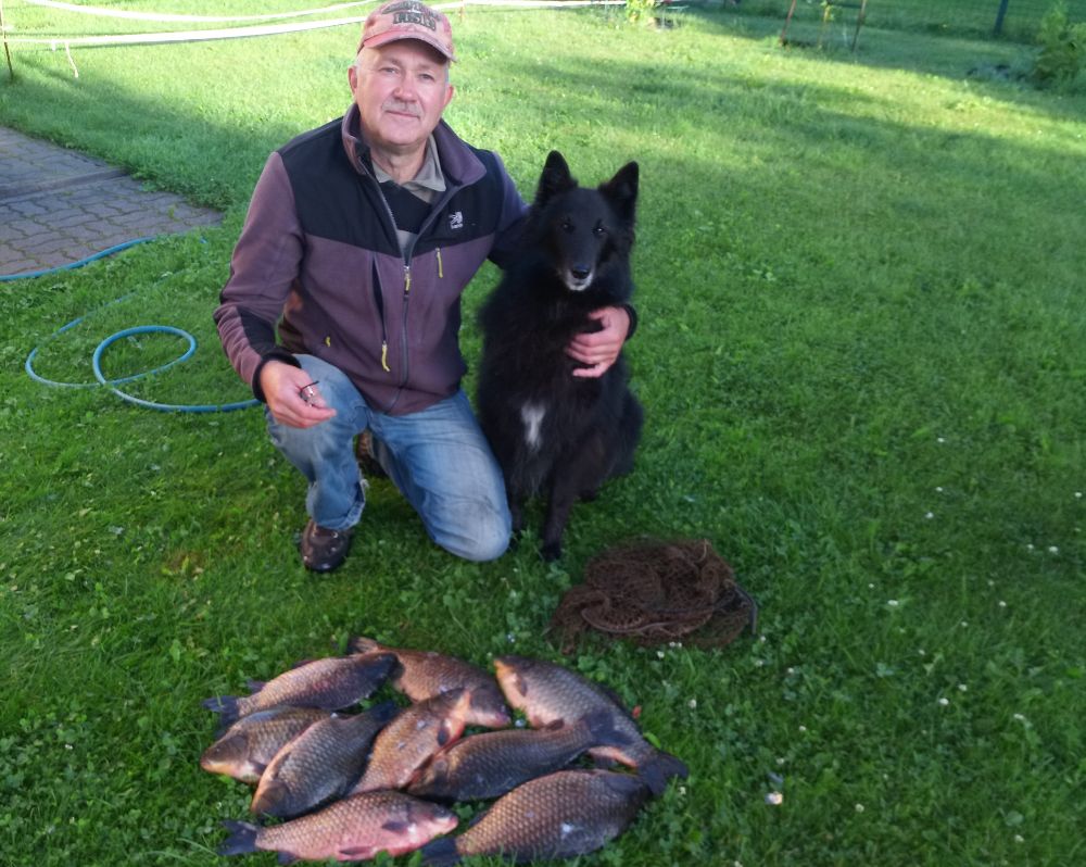 Не с самого утра, ближе к обеду, мыслишка посетила:а не попробовать ли половить карасика. Не хитрые сборы, но беру с собой и фонарик и светлячки, на всякий, может и по темну попробуем половить. Часа два дня уже было, подъезжая к местечку думаю:куда я еду? - в колонне машин, и припарковаться наверно негде. Негде, так негде, развернёмся да уедем. Два рыбака собираются, пешим ходом проезжая мимо поздоровался, спрашиваю:это что, всё рыбаки? Показывая на припаркованные машины. - Да. Отвечают. - в два раза больше было. Сделаю кружок, найду место, хорошо, нет, так уедем. И бах, прям перед нами, отьезжает машинка, мы на это место нырк, вот так повезло. Вышли из машины, собака аж растерялась, место для неё новое, и очень уж оживлённое, да и сам опешил и до сих пор в себя прийти не мог до конца, понимаю была б весна, тогда понятно, а тут середина осени и такое, ну ни как не ожидал. Идём вдоль берега, довольно плотно рыбаки стоят, где тут могло поместиться в два раза больше? Наверно не судьба, наврятли мы свободное местечко найдём. И когда уже почти отчаялся, бах второй раз заподряд везение, свободное шикарное, просторное местечко, где и вдвоём запросто рыбачить. Разложились начали рыбалку, опять всё не то, сильно не пресингуя полавливается плотва, крупная, но вся в точках, брать не охото. Переоснастился, не помогло;перешёл на квадратно-гнездовой обстрел в шахматном порядке, нет, ну нет удачи и хоть ты тресни, а кругом только и разговоров про полные вёдра непонятно чего, с вкраплениями карася. Да совсем разучился рыбачить, а чего тут ещё остаётся думать? Расстроился не на шутку, поставил оба фидера на точки работавшие по весне, солнце коснулось, горизонта, плотвичка замолчала, начинало смеркаться. И бах, от неожиданности аж подпрыгнул, первая нормальная поклёвка, да такая, что фидер чуть не улетел. Оказалось карасик, грамм шестьсот, уже неплохо, появился смысл и на темноту остаться. Через четверть часа второй, грамм на триста, ещё десять минут третий, грамм четыреста. Четвёртый через пять минут. И как разошлись, на обе палки, сами клюют, сами попадаются, мне остаётся только вытаскивать. Тут главное вовремя остановиться, с первой поклёвки прошло всего пятьдесят минут а у нас уже восемь штук, оба фидера на берегу, с одного карася не успел снять второго пришлось вытаскивать, ещё не совсем темно, успею собраться без фонаря, на жарёху за глаза, на этом решаю и закругляться. Уходили, был такой довольный, как очень уж давно не был, хоть завтра опять на рыбалку, всё вернулось и задор и азарт, и подруга меня поняла, видно радовалась, что закончилась грустная серия невезение. Спасибо водяному, и всем удачи