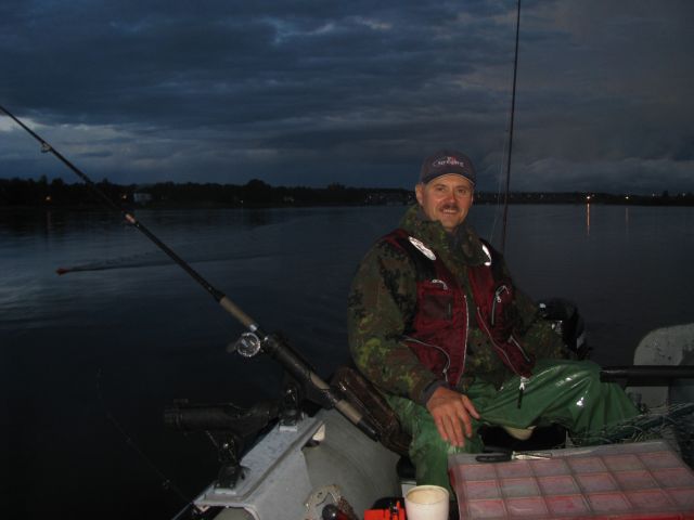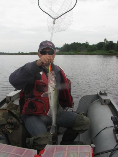 16/06/2012 побывали втроём на Большой речке в составе двух лодочных экипажей (2+1 человек). День прошёл удачно: я имел честь подсачивать своему напарнику Димону его рекордного судака в 4,8 кг.