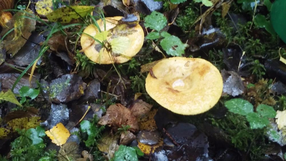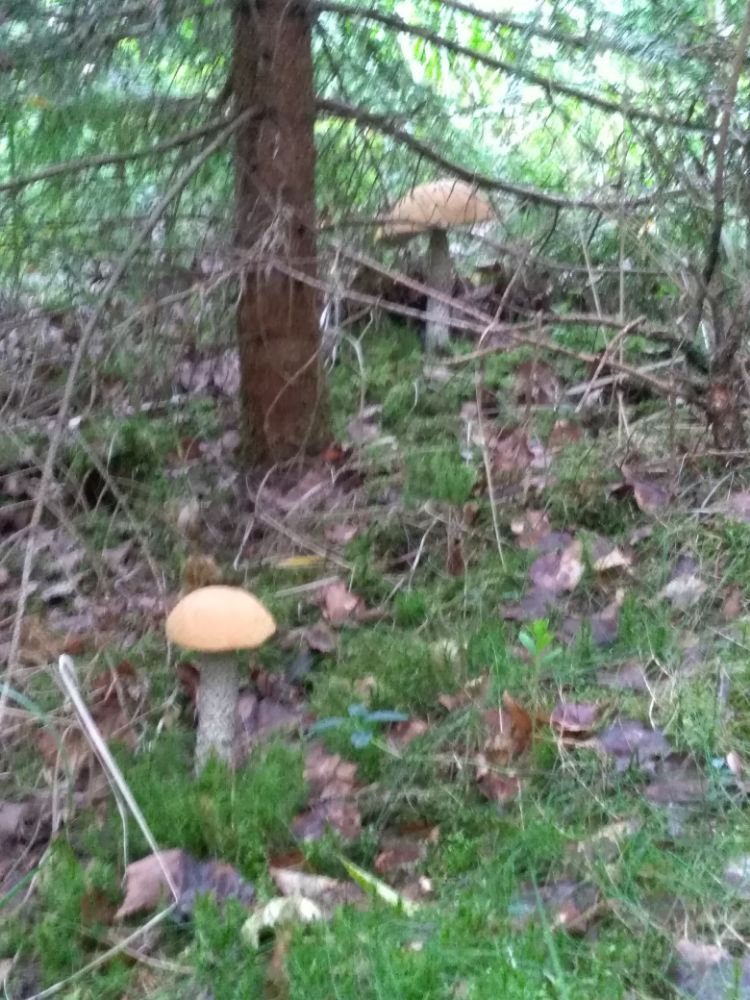 Те грибы, что не заметил в прошлый раз подрасли, которые прятались под мхом уже поболее блюдца, молодых тоже много.
