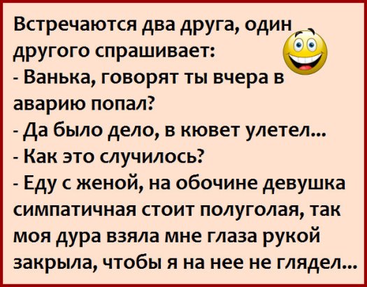 Такист отработал смену в выходной. Устал, что пыжнец. Едет в парк и останавливается на светофоре. Через открытое дверное стекло тут же просовывается на пол туловища грудастая бабца: