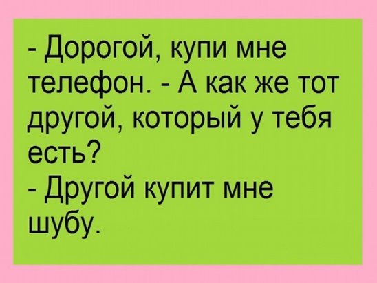 — Нет, не купил-сегодня встретил твою подругу. Мы пошли к ней домой, выпили, закусили. Тут она разделась и говорит мне так ласково: "Бери что хочешь. »