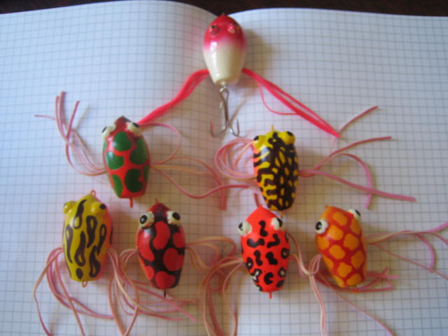 В мае мой товарищ по рыбалке Джон сообразил партию глиссеров-лягух по аналогии с тайским Блэк Фиш (на общем фото самый верхний).