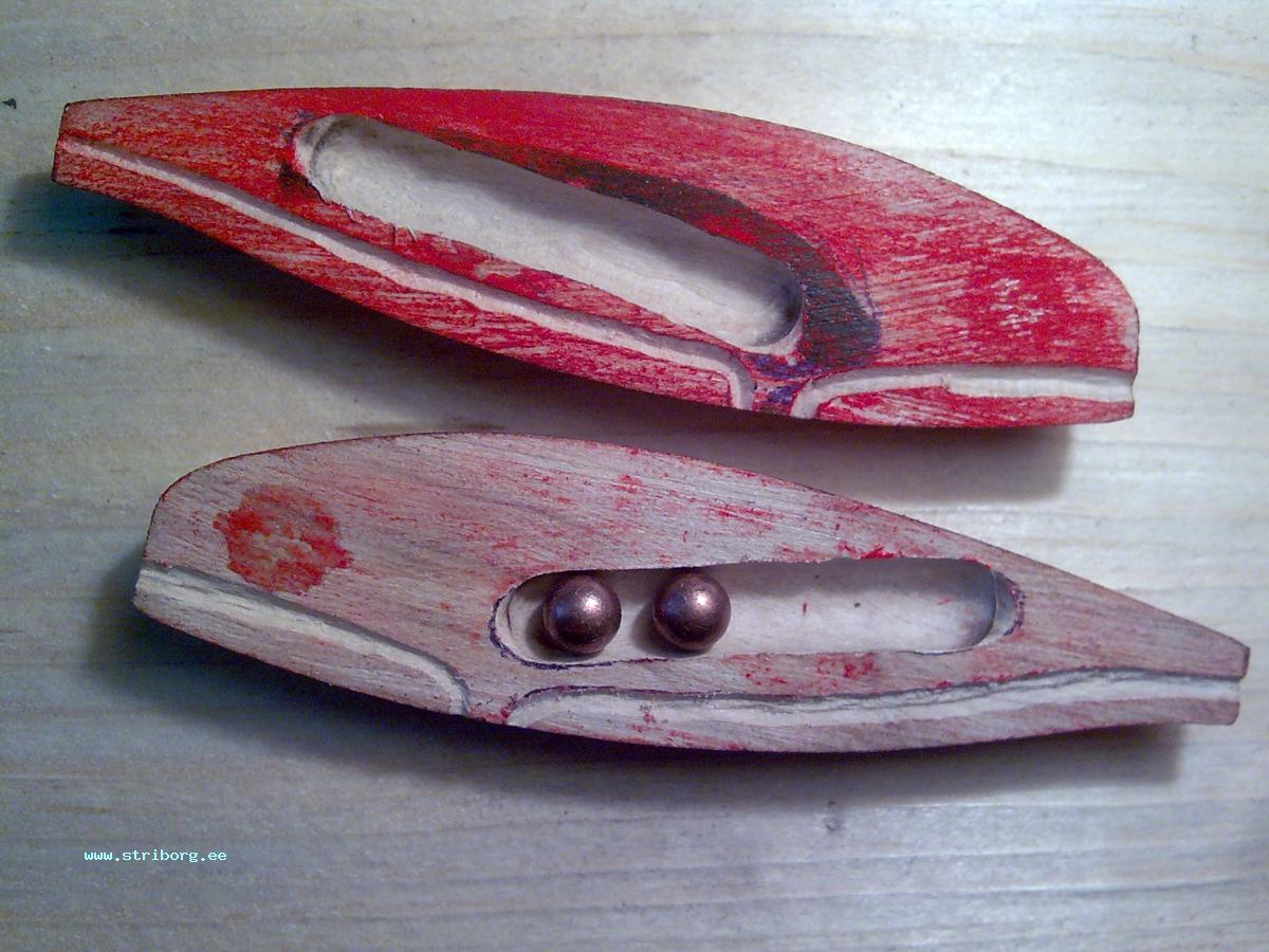 мои попытки сделать воб. с таким же пазом под шары не увенчались успехом!dron писал(а):Всем добрый вечер! Хотелось бы услышать мнение умельцев.Мой опыт в воблеростроении невелик, особенно с различными системами дальнего заброса. Будет ли такой воблер правильно работать? Может нужно произвести какую-нибудь дополнительную настройку в воде перед склеиванием двух половинок? Воблер делал из твердой деревяхи (похоже на граб). За ранее спасибо.