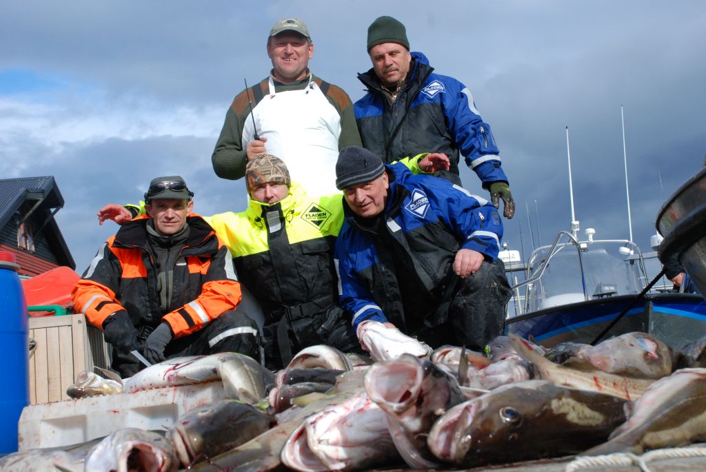 По рыбе - все как в северной Норвегии. Крупная треска и много, попадалась до 15 кг. Зубатка, пикша, сайда, менек, камбала. Самое главное - полно палтуса. Все поймали по нескольку штук. Самый большой - 10 кг. 95 см. Пик сезона будет в августе.
