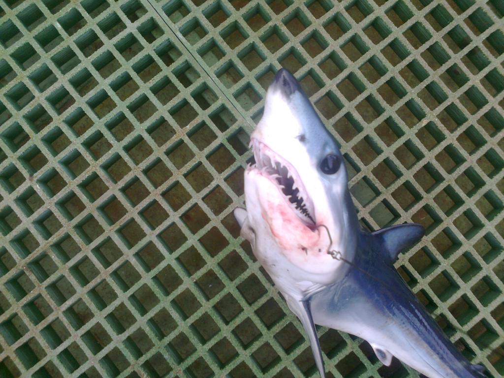 Зная, что Дорадо обожает ету рыбу, я использую ее как наживку. Сегодня в водах Анголы, к моему удивлению, вместо Дорадо на крючке оказалась акула, а точнее говоря акулёнок. Вес был около 5-ти кг. Я сперва растерялся, так-как снимать акулу с крючка - довольно опасное занятие. Было страшновато, особенно когда она начинала вертется с открытой пастю. Была отпущена обратно в океан