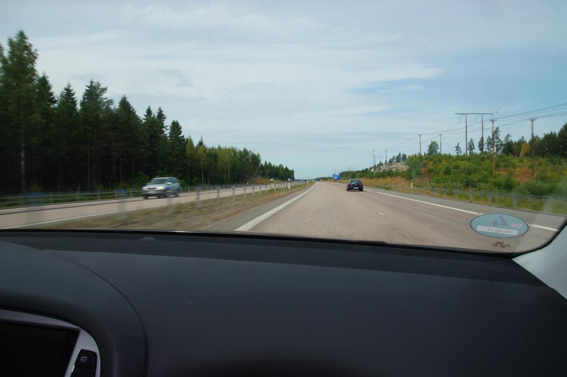Трасса от Стокгольма до границы с Норвегией, а мы шли по Е20/Е18, просто сказка, особенно в начале. Во многих местах скоростной режим 120 км/ч. До границы дошли практически на одном дыхании, остановившись только на перекус и на заправке для пополнения горючки, ибо по Норвежским ценам были наслышаны.