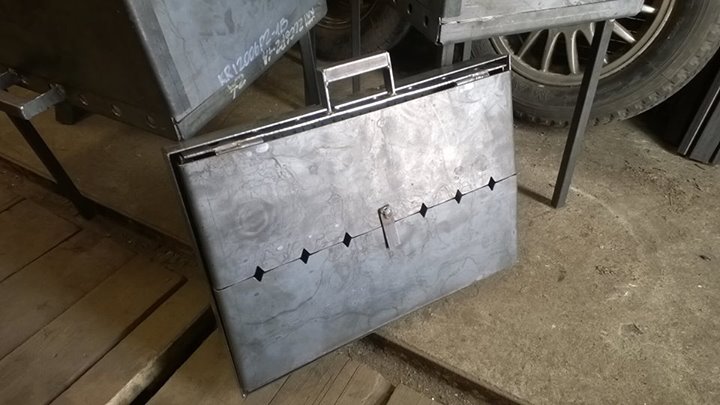 Модернизированный складной мангал. 2 уровня для установки решетки, крышка. Все по-прежнему собирается в один чемодан.