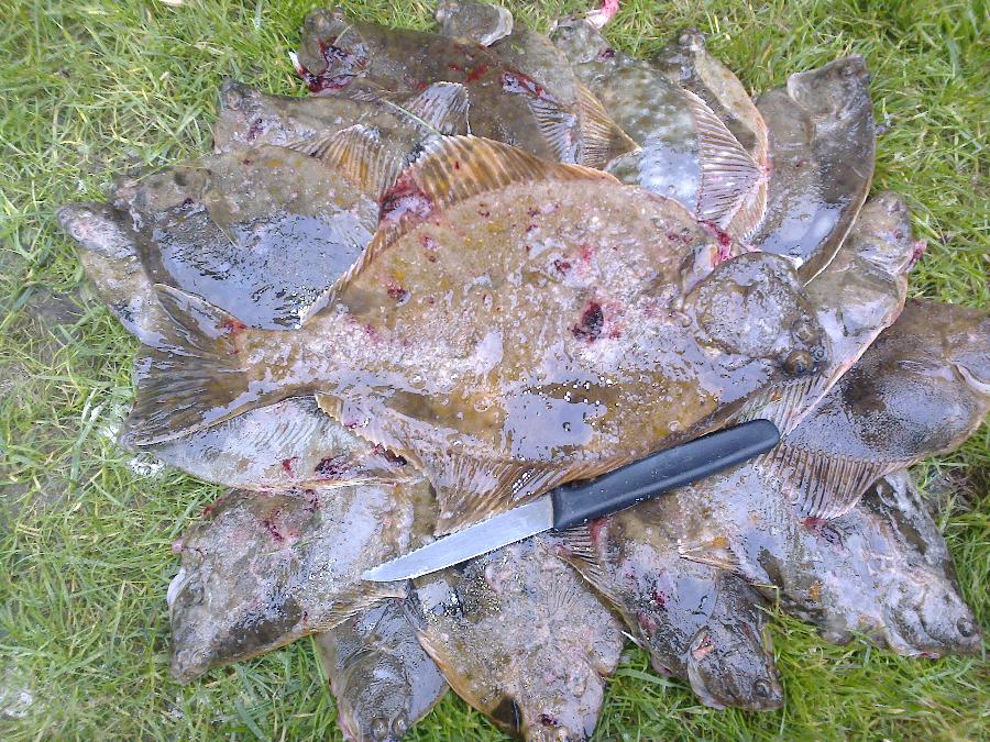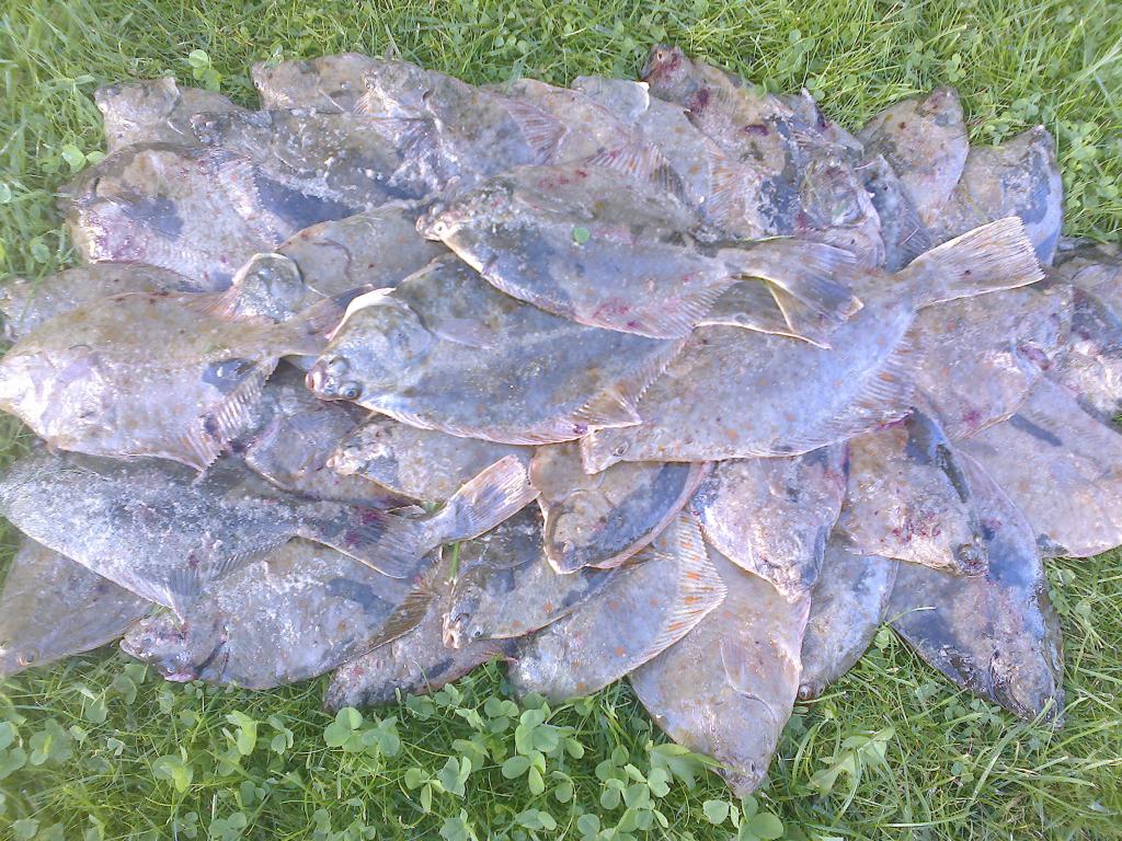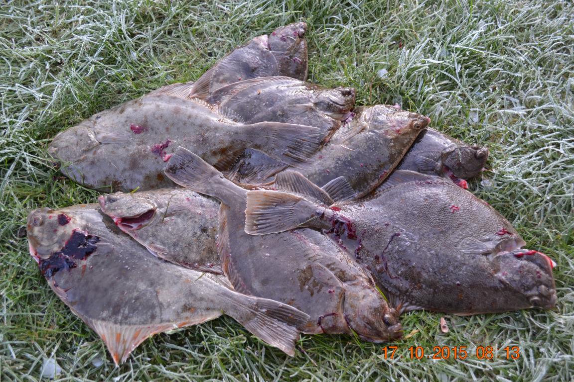 Как только солнце скрылось за горизонтом, получаю выход на все палки. Камбала откровенно мелковата. Разрешенный размер с 18см. Засим фильтруем.