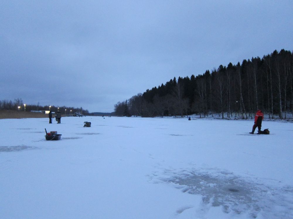 , также полный Х5 латвийских коллег, перекинулись пару словами, и в путь. Путь был не легок из-за снега, но дошли и разчехлились. По утру, еще как-то поклевывало, а потом как отрубило. На жареху наковырял, и то хорошо.Упираться не стали, и в 13 двинулись в обратку. Ход стал еще хуже, санки реально тормозили, и забирали последние силы.Но вернулись.По клеву, сделали вывод; что будет резкая смена погоды, по-сему рыбасы рот закрыли