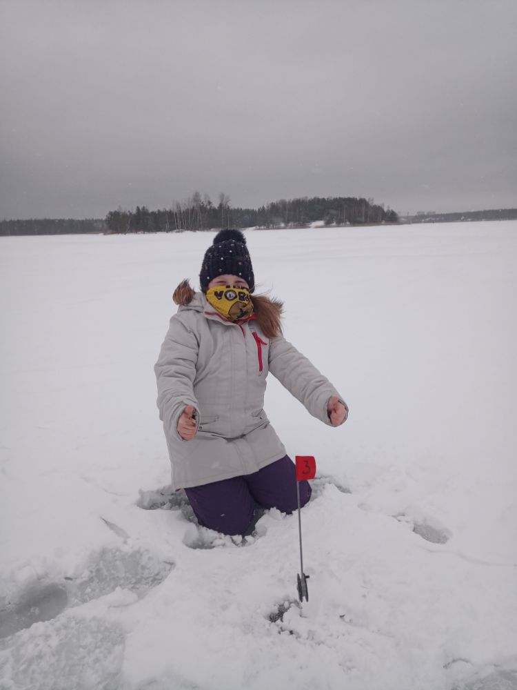 Шнурка, естественно,отпустили обратно.Далее вот этот вот день шнурка,как выразилась Ульяна,продолжился по-полной.То собьёт живца, то просто поднимет флажок,то сходы...Тем не менее,в какой-то момент опять подъём флага,уже 5-й по-моему...Почти вся катушка смотана,осталось метра 3 лески,сдали нервы, подсек-и чувствую хорошую рыбу.Но протащил всего метра 2,и она сошла