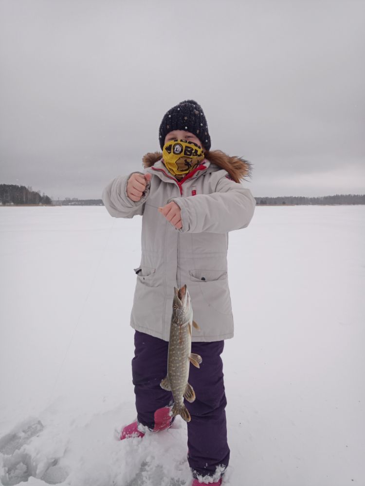 С блеснением тоже всё прошло нормально,вот только рыба не баловала нас поклёвками.С трудом изловили 3 окушка и всё,но сами манипуляции с блесной,игрой, Ульяна поняла,что и как,и это меня не могло не радовать!Щуку мы хотели отпустить,но там тройники в желудке, тут уже без шансов, поэтому забрали домой.Главное: теперь я попал на снасти, время, деньги и всё такое