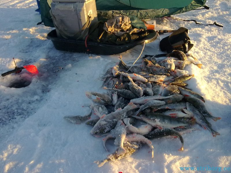 , воздух аж звенит, переоделись и начали секухой пробивать. Ребята присели на мормышку, я пошол чуть дальше и нашол свежую трещинку. Два оборота и лунка. Пробую секушку, отзывается сразу но потом быстро затихает. Пробую мормышку, пошло веселее. Ставлю палатку и так до конца дня не схожу с этой лунки. Через пол часика подтянулись ребята и ловили вместе, подсказывая друг другу на какой глубине берет и подбадривая вытянутыми бонусами и полубонусами