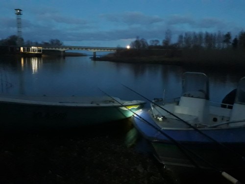 В пятницу ветер только что деревья не вырывал , за ночь подстих малехо. Под утро даже солнце выглянуло . Поднялсч выше по реке , температура воды как и в прошлые выхи , меньше трех градусов, ну и по рыбалке все как в прошлые выхи , ельца нет . Просидел до обеда в надежде что может толкнется , не случилось. Перешел к устью , там рыбка шевелилась , но ветер , пару раз с якоря стаскивало , поимел на жареху и устав боротся с ветром подался до берега.