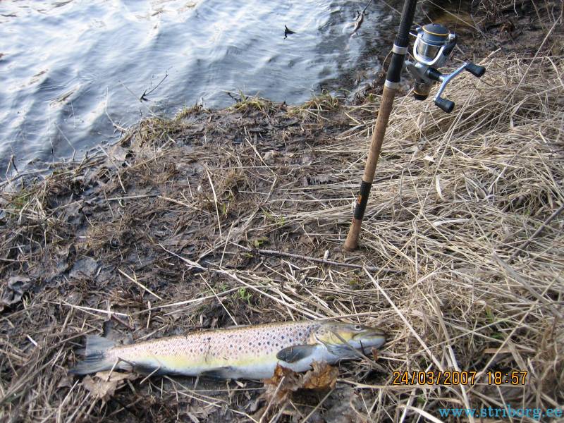 Я в 2003 году на повороте (напротив протоки) недалеко от острова парню с Маарду помог багориком "десятку с половиной" вытащить. Стояли рядом по самые "помидоры" в воде и бомбили одно место час примерно практически одинаковыми блеснами (колебалками узкими). Видели, как сыграл лосось и целенаправленно обрабатывали это место. Парню удача улыбнулась конкретно - но кайф мы оба тогда получили офигенный!