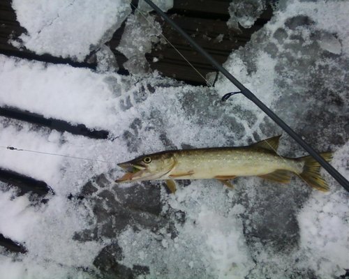 Сегодня, район Пикасила.Всё тот-же мелкий окунь и криминальные прищепки. Крупной щуки наверное нет? Нет есть! схватила одна мамка щупака и не отпускала пока я её к лодке не подтащил и стал в подсак заводить(Понял я это когда поднял распоротого щупака из воды). Всё-таки у неё хватило мозгов отпустить добычу . Может стоит попробывать приманки поболее размером