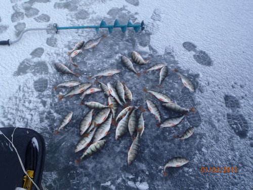 Лишь около 12 одна из моих лунок разродилась 8ю подряд окунями, из которых 5 оказались приемлимого размера