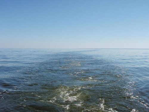Лодку на воду! Пошли! Чудские рассветы в такую погоду..Это нечто! Уровень воды, как говорили, был совсем малым. Заранее знали, что ловли из-под чайки не будет, значит надо применять другую тактику. Много лодок в береговой зоне. В траве гоняют окунька и щуку! Знаем такую тактику, плавали. Но мы ж на Чуде первый раз в этом году. 6 утра, а тепмпература +20. Каким же день будет…Ветра нет. Редчайшая погода! Супруга просится на границу скататься. Я говорю – зачем? Она – ни разу не была там летом. Я говорю, мол там такое же озеро, границу не заметишь! Просит..НУ, да ладно, поехали. Понимаю, что на нашей тарахтелке быстро не получится, аппаратура кажет 21км. По пути встречаются точки боевой славы, на коих порой задерживаемся, дабы проверить,есть ли активное стадко крупнячка. Неету!