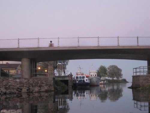 На берегу этот катерок резво поднимают на прицеп и уезжают, аккурат в тот момент, когда в начале канала показывается катерок с погранцами. Через 2 минуты они подъезжают. Далее общаются между собой, из их речи понимаем, что какой-то катер вытаскивал сети нелегальные, а они его поймать не успели. Начинают изучать следы протекторов... Захотел расспросить у них про рыбалку. Когда сказал, что мы были у границы, они напряглись и уточнили, не лезли ли мы в режимную зону. Мы успокоили, что навигация у нас самая точная и посоветовали поставить там буйки, а лучше огородить забором – санцкии все-таки! Они посетовали, что буйки раньше были, а затем утонули.