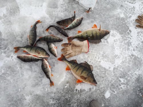17.18 выход с казепа. Cнежка добавилась и лёд подрос, начал поиск с 12 км . Окунь молча наблюдал за полосканием железа, только изредка катались матросики. К 14 часам бурится больше не было сил да и смысла в это время я был уже на 8 км, сел на мормышку плотка отозвалась сразу. На второй день едем сразу на 8 км, рыб начал брать с 10 и на опускание. В 11 завтрак был окончен и клёв стал размеренный на удивление 30% был окунь, размер от 150-500 и зачем я первый день бегал с железяками. Из моих 6 рыболеев бонусные подарки были у каждого, кто сидел на морышке. Максимальный улов за 2 дня 14 кг