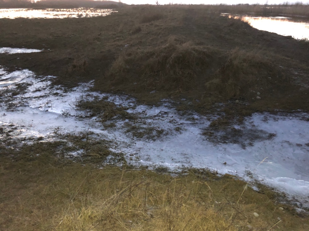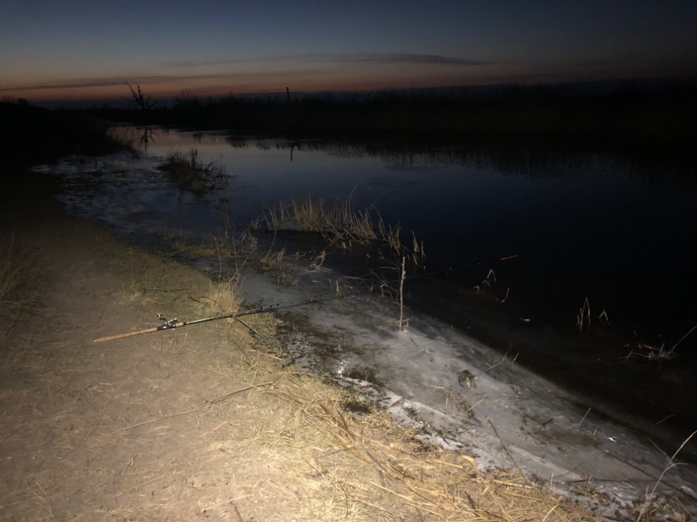 Уровень воды низкий, на берегах закраины, местами довольно большие. По воде гонит шугу, причём поначалу она легко резалась шнуром, но ближе к ночи смёрзлась и превратилась в льдины и ловить из под противоположного берега стало проблематично.