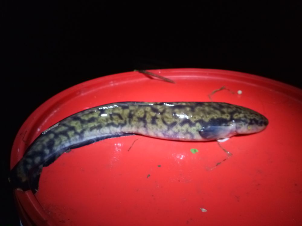 Заплыл в болотниках куда хотел. С сумерками начался выход младшей группы налимьего детсада.