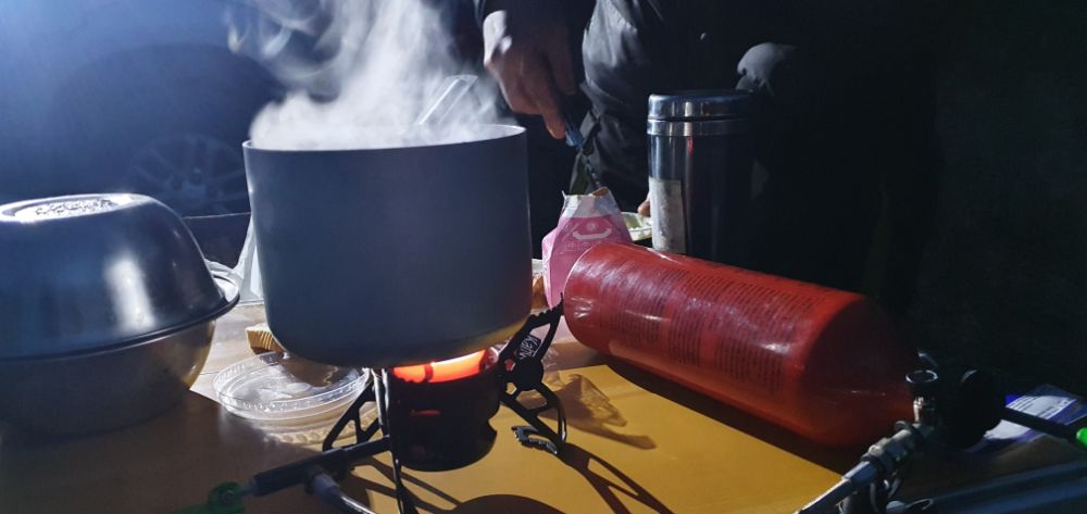 В 23.30 снялся и тут же включили дождь.