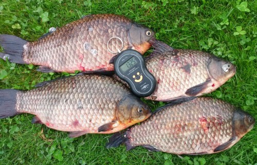 Не с самого утра, ближе к обеду, мыслишка посетила:а не попробовать ли половить карасика. Не хитрые сборы, но беру с собой и фонарик и светлячки, на всякий, может и по темну попробуем половить. Часа два дня уже было, подъезжая к местечку думаю:куда я еду? - в колонне машин, и припарковаться наверно негде. Негде, так негде, развернёмся да уедем. Два рыбака собираются, пешим ходом проезжая мимо поздоровался, спрашиваю:это что, всё рыбаки? Показывая на припаркованные машины. - Да. Отвечают. - в два раза больше было. Сделаю кружок, найду место, хорошо, нет, так уедем. И бах, прям перед нами, отьезжает машинка, мы на это место нырк, вот так повезло. Вышли из машины, собака аж растерялась, место для неё новое, и очень уж оживлённое, да и сам опешил и до сих пор в себя прийти не мог до конца, понимаю была б весна, тогда понятно, а тут середина осени и такое, ну ни как не ожидал. Идём вдоль берега, довольно плотно рыбаки стоят, где тут могло поместиться в два раза больше? Наверно не судьба, наврятли мы свободное местечко найдём. И когда уже почти отчаялся, бах второй раз заподряд везение, свободное шикарное, просторное местечко, где и вдвоём запросто рыбачить. Разложились начали рыбалку, опять всё не то, сильно не пресингуя полавливается плотва, крупная, но вся в точках, брать не охото. Переоснастился, не помогло;перешёл на квадратно-гнездовой обстрел в шахматном порядке, нет, ну нет удачи и хоть ты тресни, а кругом только и разговоров про полные вёдра непонятно чего, с вкраплениями карася. Да совсем разучился рыбачить, а чего тут ещё остаётся думать? Расстроился не на шутку, поставил оба фидера на точки работавшие по весне, солнце коснулось, горизонта, плотвичка замолчала, начинало смеркаться. И бах, от неожиданности аж подпрыгнул, первая нормальная поклёвка, да такая, что фидер чуть не улетел. Оказалось карасик, грамм шестьсот, уже неплохо, появился смысл и на темноту остаться. Через четверть часа второй, грамм на триста, ещё десять минут третий, грамм четыреста. Четвёртый через пять минут. И как разошлись, на обе палки, сами клюют, сами попадаются, мне остаётся только вытаскивать. Тут главное вовремя остановиться, с первой поклёвки прошло всего пятьдесят минут а у нас уже восемь штук, оба фидера на берегу, с одного карася не успел снять второго пришлось вытаскивать, ещё не совсем темно, успею собраться без фонаря, на жарёху за глаза, на этом решаю и закругляться. Уходили, был такой довольный, как очень уж давно не был, хоть завтра опять на рыбалку, всё вернулось и задор и азарт, и подруга меня поняла, видно радовалась, что закончилась грустная серия невезение. Спасибо водяному, и всем удачи