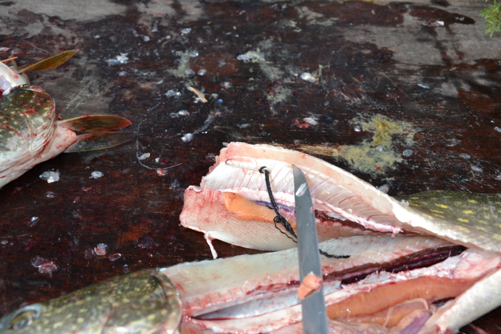 При разделке рыбы у одной нашли в желудке крюк со снурком, видать какой-то "умелец" ставил на живца.
