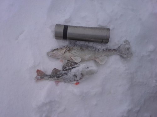 В первой-же лунке,на первой пятиминутке судак отозвался! Есть начало! Продолжения не последовало.А вскоре и хороший такой, зимний, дождик начался.Одежда вмиг покрылась льдом так,что кажется пошевелишься и сломаешь.Пришлось быстренько ретироваться.