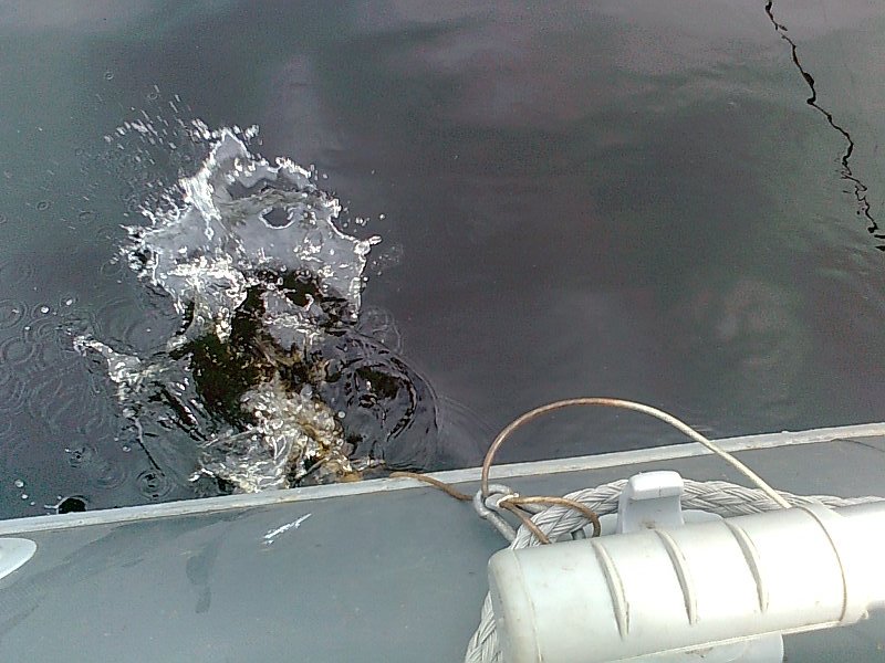 нормальный размерный щук... повесил на кукан, только отошёл метров 20....снова загибон, нормального размера вокунь