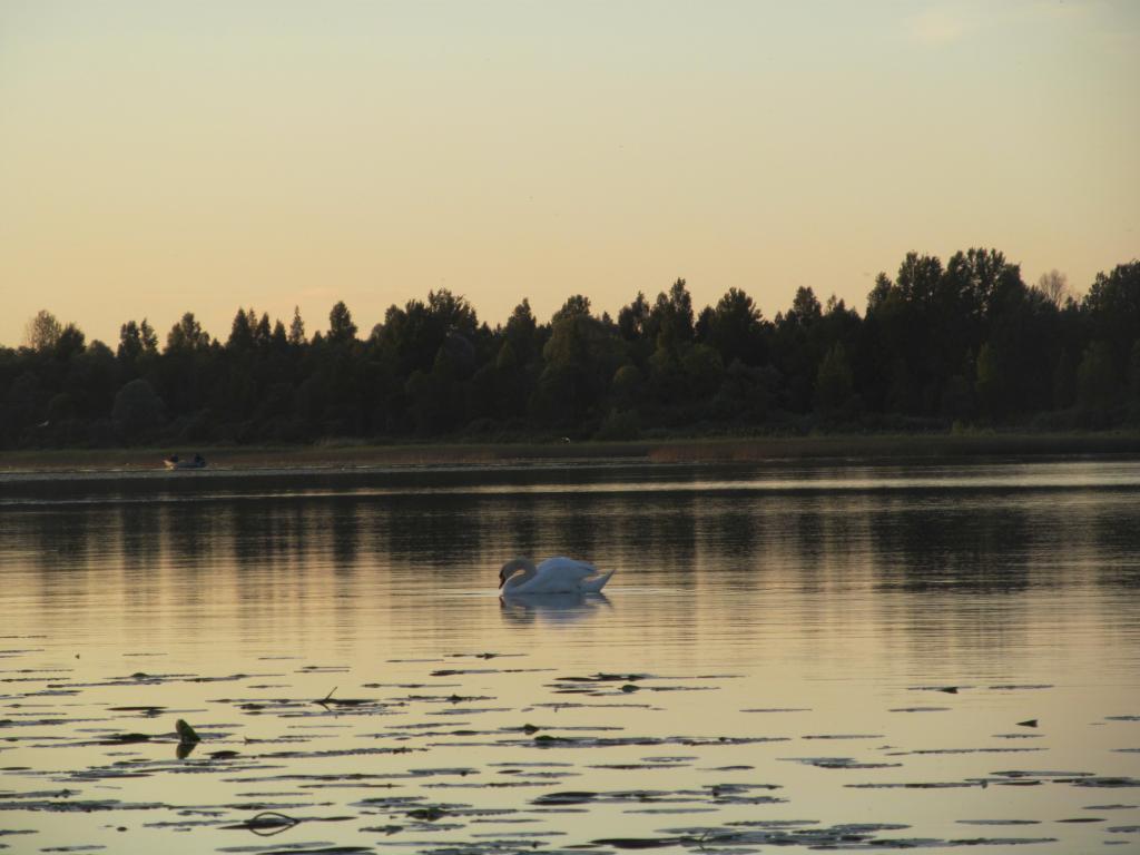 вечерело,рыболовы направились домой,а мы все ждем! Приплыл лебедь-красавец.Наверное ему одиноко,так недалеко от нас и ночевал.