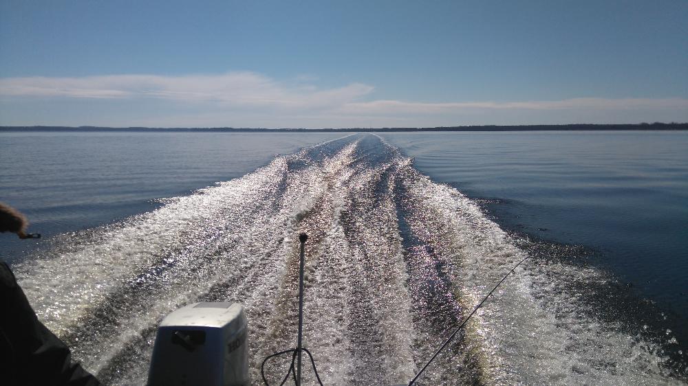 . На озере изредка бываю,даже иногда что-то и ловиться. на открытие, 1 Мая, пару щучек поехало домой,но сезон для меня начинается с 15 июня,когда можно потроллинговать. На озеро приехал в начале пятого утра,припарковался,скинул лодочку,и действие началось