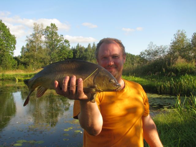 и уже с кусочками и удочку метаешь с кусочком корки, ну и сидишь как кот. Шпулю открытой надо оставлять, иначе уволокен нах точно, просто с курьерской скоростью все происходит иногда, цоп и мигом метра 3-4 стащило. Подсечка правда не каждая удается, много пустых, но иногда хоп- сидит. Попадались чаще такие приятные полтарашки