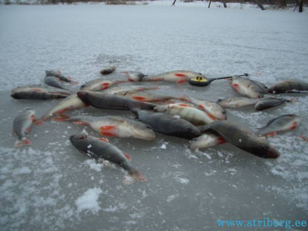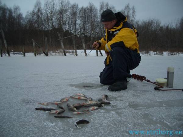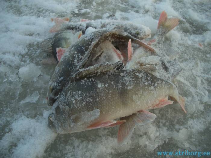 В субботу поехали на Лиелупе в район Спуньки. Довольно быстро у меня на блитку попался вполне достойный окунь грамм под 200, и тишина. По количеству лунок было видно, что действительно побоище было неплохое, но, как всегда, "вчера и завтра".