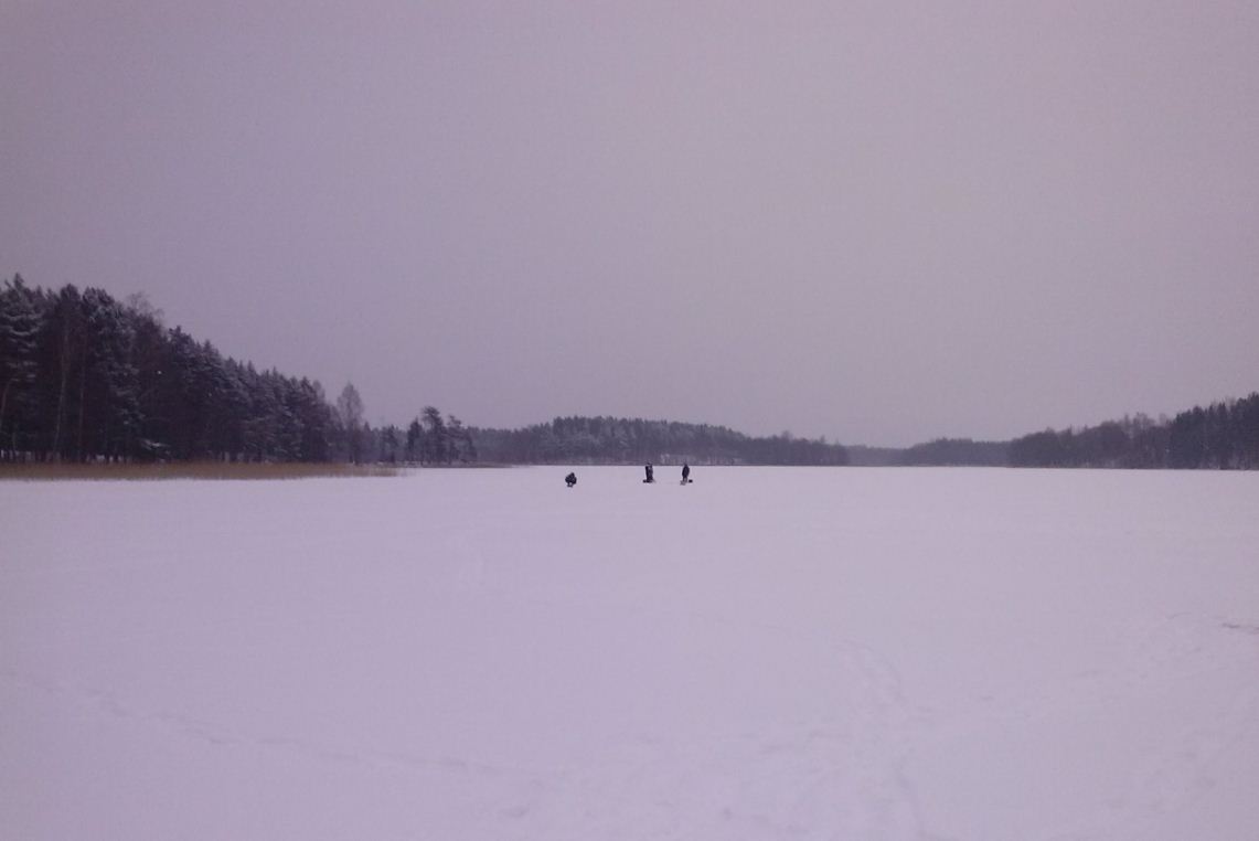 Утром чуть все не сорвалось – машина не хотела заводиться, но все-таки уговорил – с небольшим опозданием мы на месте. Местный уже на лунках – располагаемся рядом. Вчерашние лунки найти непросто – все занесено снегом.