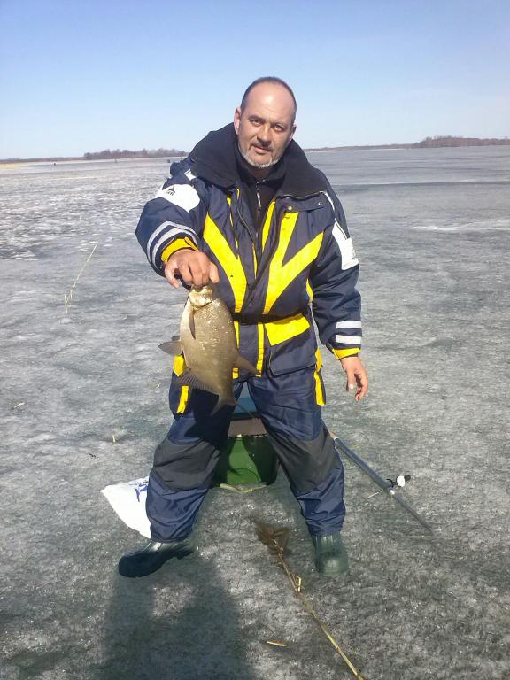 Куда бежать ? А кто куда, народ в основном недалеко от тросты. Расположился на вчерашних лунках – вскрывать которые пяткой и не так то просто было, свежий ледок поддавался лишь со второго третьего удара. Невдалеке суета небольшая – с помощью друга рыбачек вырвал-таки лещенка , полтарашку примерно.