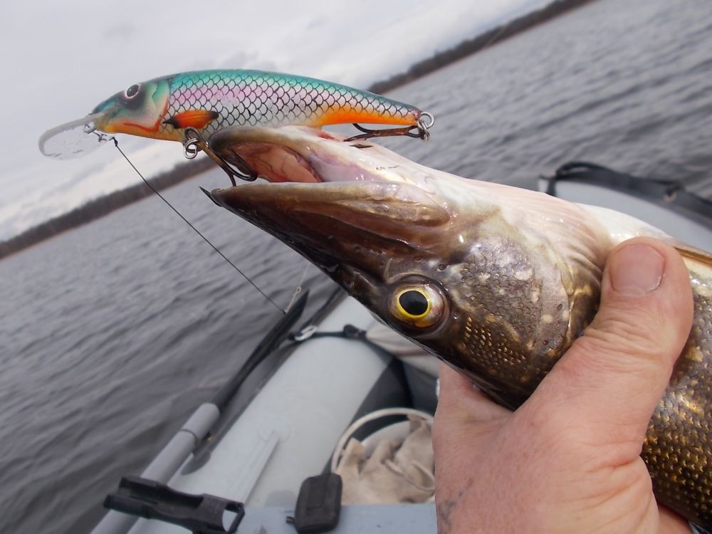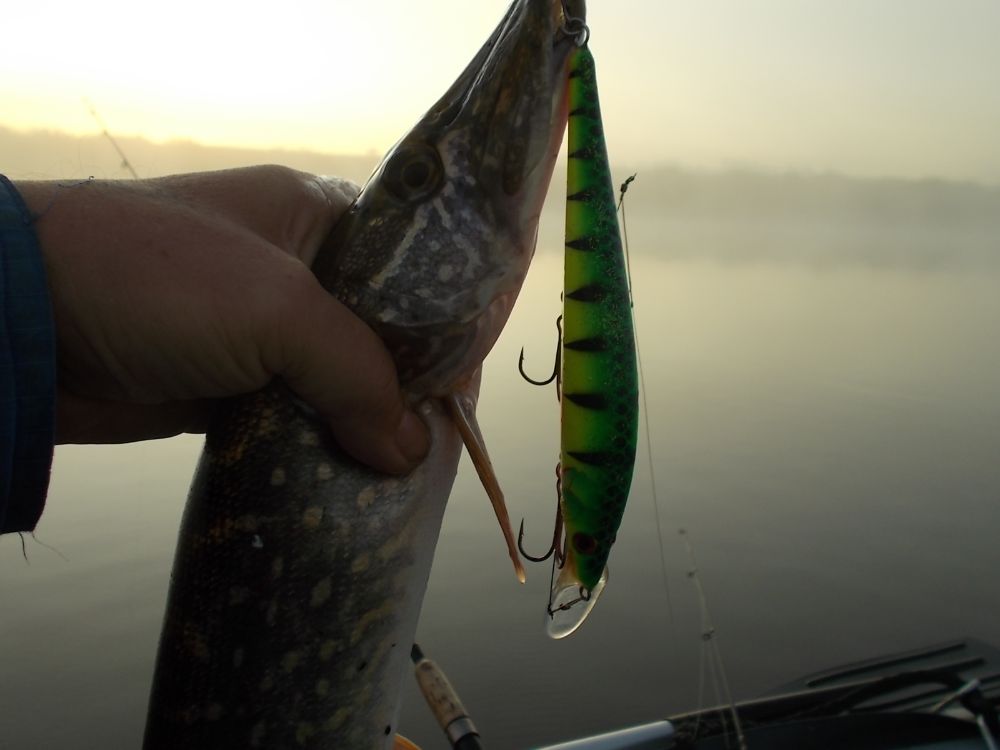 Товарищ на балансир выманил щучку зачетную, а окунь брать отказывался.