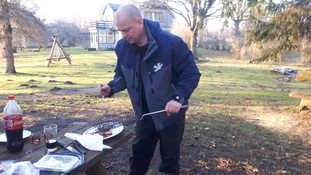 Сведения о наличии стабильного льда , полученные по телефону в начале недели от местных жителей, позволяли надеяться на открытие нового зимнего сезона, несмотря на промозгло-слякотную погоду в Риге. Раненько поутру наша компания из 7 человек на 2х машинах прибыла на место. Первый взгляд на озеро с прибрежной горки порадовал - все озеро покрыто льдом, припорошенным свежим снежком, других рыбачков не видать. Тем не менее, наши разведчики выходили на лед осторожно, предваряя каждый шаг ударом пешни. Как оказалось, все озеро покрыто крепким льдом около 8см толщины, который не трещит и уверенно держит нагрузку (даже 2х рыбачков, которые впоследствие решили на нем побороться, придя в эйфорию от самого факта первой зимней рыбалки после принятия некотрой дозы доброго виски