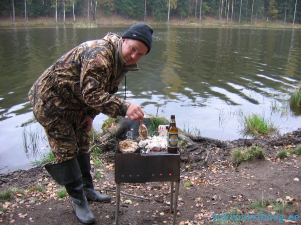 Замес прикормки, не магазинной, своей, и практически сразу начался клев.Ловилось примерно 3 к 1 по сравнению с соседями, найденная в прошлом году пропорция ароматизаторов пока рулит и в этом году.За часа два поймали примерно с десяток марпиков до 2 кеге, а потом последовала уверенная поклевка с поломом кончика удочки
