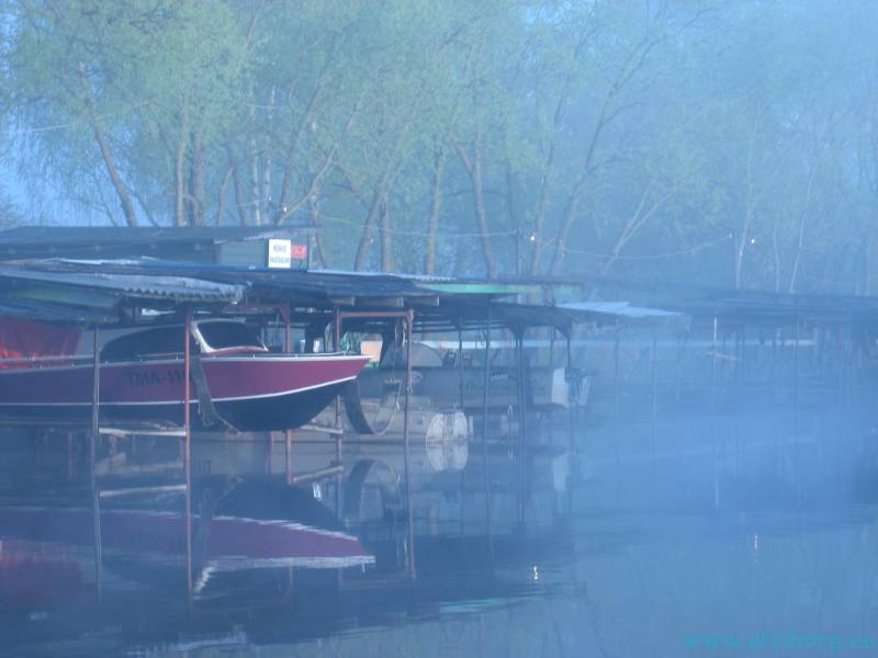 Туман и на речке присутствовал , иногда приходилось идти только по очертаниям береговым и сбавляя скорость .