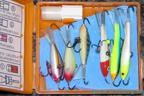 Наверно уже пора запасатса балансирами!И тут наткнулса на очень правильную опись самово результативново балансира.Я в прошлом зиме тож прикупил штук 20 таки,но результативними оказались тока 3 из них,причом в разных водоёмах!Две по окуню и один побольше на шуке,причом шука ценила серебристоголубую раскраску тока.В основном были шурёнки по пол кило,тока одна было больше двух.Но,как часто случаетса,потерял я всех своих уловистих,кто пошол на пиирсинг,кто коржнике осталса,зимой тож отцеп надо брать собой,часто надо потому што под кромку льда тоже цепляеста.FIL писал(а):А с выбором , по окрасу , то это песня .