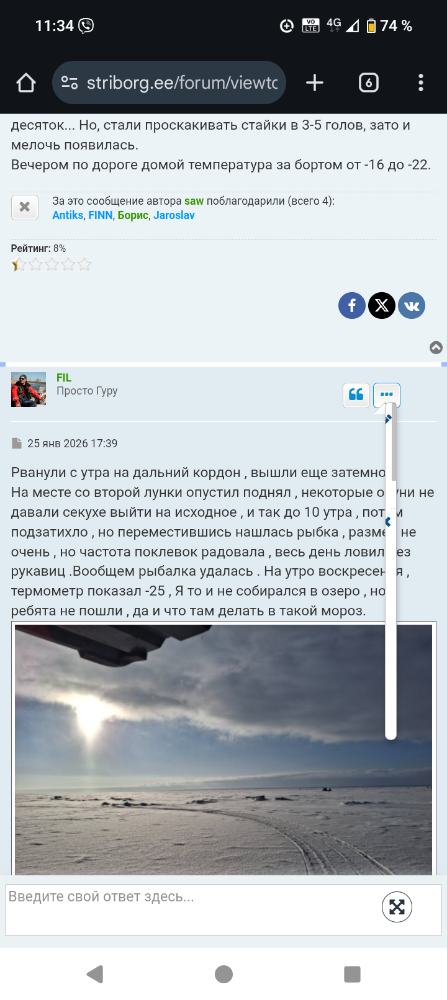 При входе со смартфона вкладка с возможными действиями в чужом сообщении неадекватно открывается
